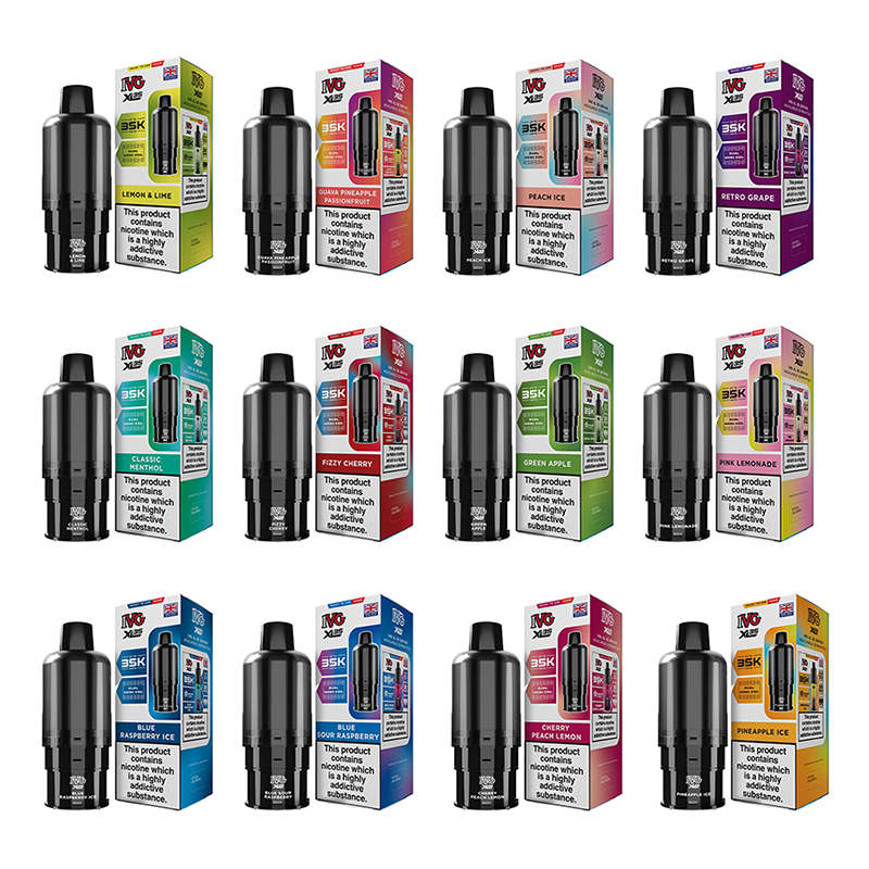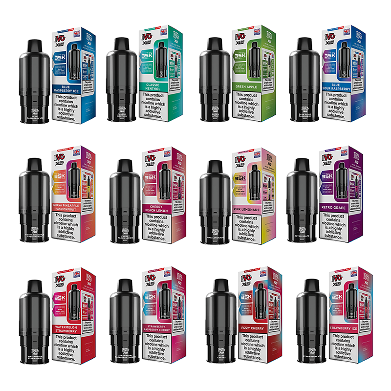 The IVG XL 35k Prefilled Replacement Pods are designed to keep your device performing at its best. They have been made to work exclusively with the IVG XL 35k Vape Kit, and each pack includes a 2ml prefilled pod along with two 10ml refill containers. Built with longevity in mind, these pods deliver consistent performance with premium flavour and vapour quality. Each pod offers up to 35,000 puffs, making them an ideal choice for vapers who want convenience, reliability, and a big puff count. Filled with IVG’s premium nic salt e-liquid, they ensure fast nicotine absorption while delivering a smooth, satisfying throat hit. Designed for mouth-to-lung vaping, they closely replicate the feel of a traditional cigarette, making them perfect for ex-smokers. Equipped with a 1.1Ohms dual mesh coil, the pods provide smooth, even heating that enhances flavour from the first puff to the last. They’re also a cost effective and eco friendly option, as you only replace the pod rather than the entire device. They are super easy and hassle-free to use, simply jusy slot the assembled pod into your IVG XL 35k and you’re ready to vape.