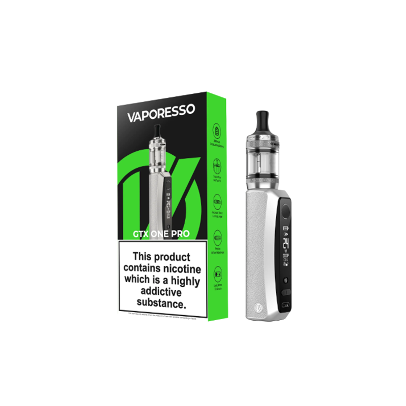 The GTX One Pro Vape Kit is a compact MTL Kit designed by Vaporesso as an upgrade to the original Vaporesso GTX One. With up to 40W of power, and a rechargeable 3000mAh battery this Vaporesso Vape can last you up to 3 days of use on a single charge. Compatible with Vaporesso GTX Coils and the XTank T, GTX One Pro supports both MTL and RDL vaping with nic salts and 50/50 E-liquids. With a 0.87-inch display, adjustable airflow, and Smart AXON Chip, the Vaporesso GTX One Pro offers you more control over your setup with a small, user-friendly design.